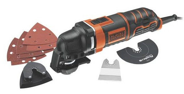 Jednotlivé nástavce lze jednoduše vyměnit pomocí unikátní páky a k výměně nepotřebujete žádné další nářadí. Mimořádnou univerzálnost přístroje zajišťuje adaptér pro příslušenství, díky němuž můžete používat i příslušenství značek Bosch, Einhell a Worx. Výrobek je vybaven trojúhelníkovým nástavcem se suchým zipem na brusné papíry a 6 kusy brusného listu (zrnitost 60, 80, 120), segmentovým pilovým kotoučem s dlouhou životností, škrabkou na lepidlo či tapety, odsávacím nástavcem, imbusovým klíčem a taškou.