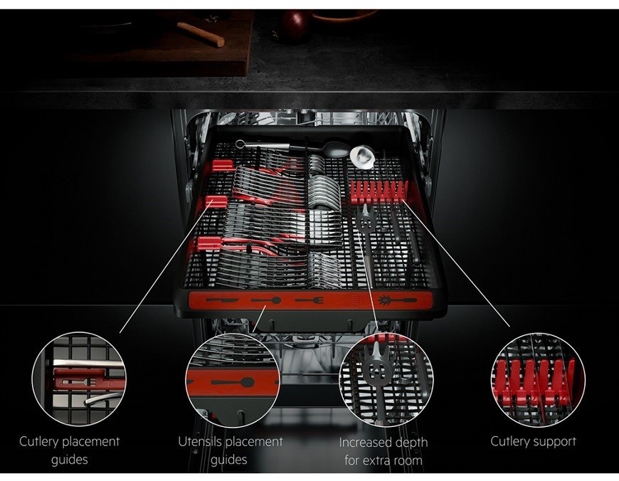 - Pro 14 sad nádobí, včetně zásuvky na příbory MaxiFlex