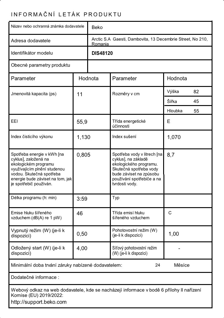 Znáte ten pocit, kdy vám po dokonalém společném obědě zůstane vám na lince hromada použitého nádobí? S vestavnou myčkou Beko Beyond DIS48120 můžete poklidně odpočívat, zatímco bude o vaše nádobí perfektně postaráno. Disponuje kapacitou pro 11 sad nádobí. Na přehledném, plně integrovaném panelu rychle a přesně nastavíte požadovaný program a funkci. Myčka má 8 mycích programů a 6 teplot. Spolehlivý motor má příjemný tichý chod s hlučností 46 dB a vztahuje se na něj záruka 10 let. Spotřebič je zařazen do energetické třídy E.