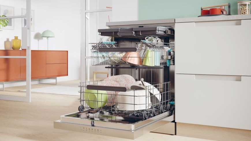 Inteligentní funkce Smart Door představuje inovativní řešení, které automaticky otevírá dvířka myčky nádobí po skončení mycího cyklu. Toto chytré řešení zajišťuje rychlé a efektivní vysoušení, přičemž minimalizuje vznik páry. Díky Smart Door dosáhnete maximálního výkonu a perfektně vysušeného nádobí, aniž byste se museli starat o zápach nebo vlhkost.