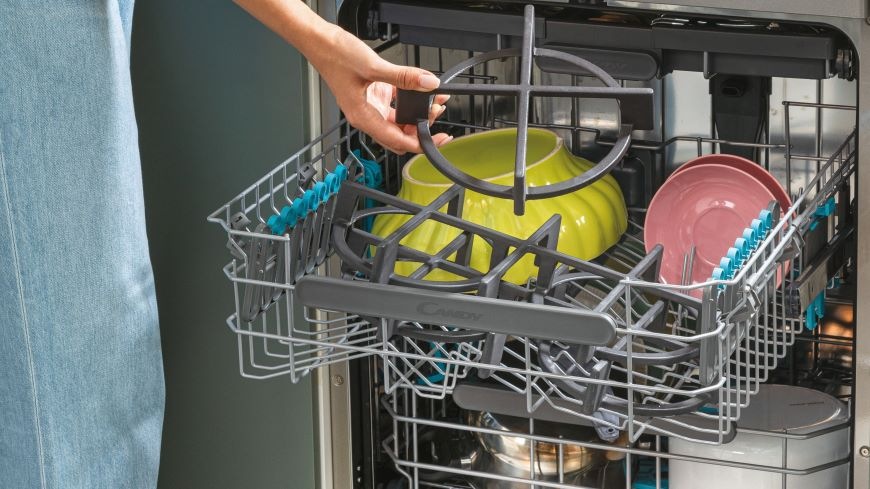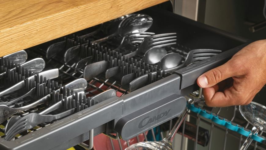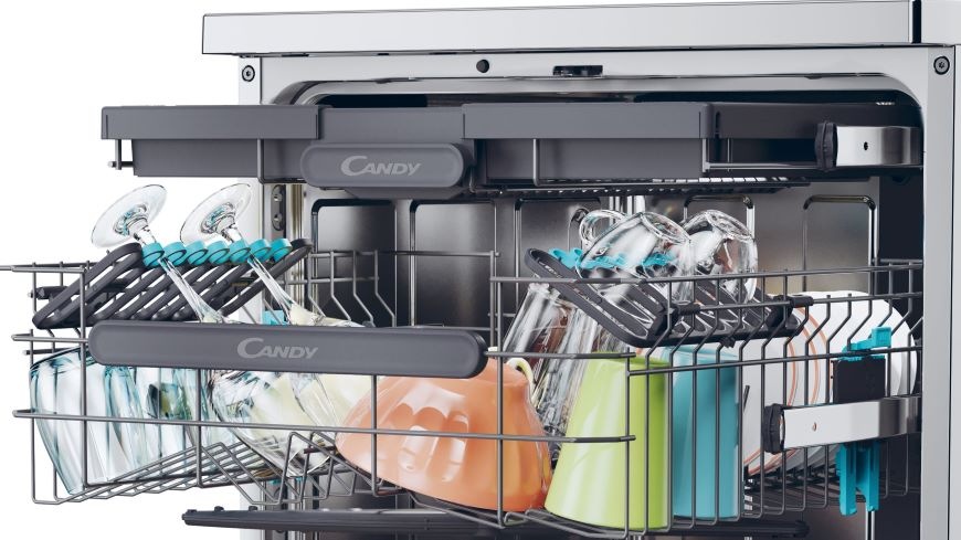 Myčka nádobí od značky Candy disponuje chytře navrženým a přizpůsobivým vnitřním prostorem, což vám umožňuje snadno umýt veškeré vaše špinavé nádobí. S třemi koši máme pro vás optimální uspořádání. V horním koši najdete výklopné držáky na šálky a skleničky, horní koš lze polohovat, ve spodním koši jsou sklopitelné držáky na talíře a navíc máte k dispozici horní výsuvný třetí koš pro praktické uspořádání příborů. Tímto způsobem vytváříme efektivní a uživatelsky příjemné prostředí pro mytí nádobí.
