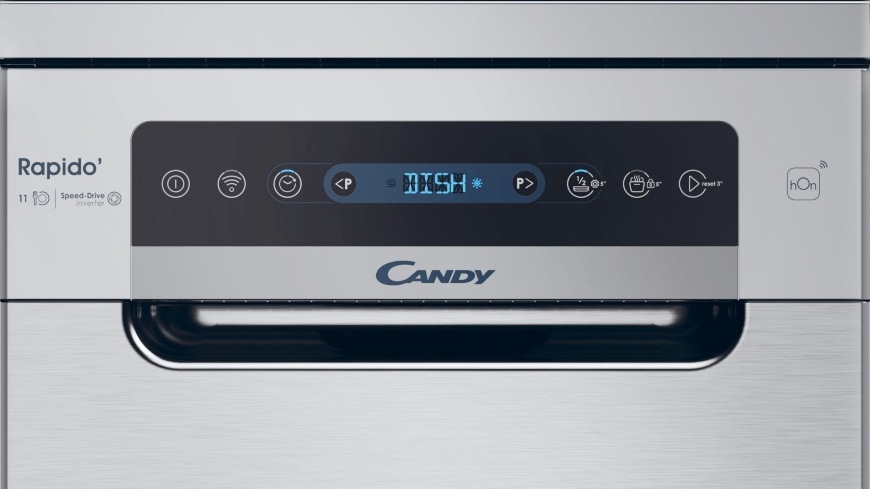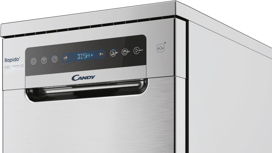 Ovládací panel myčky nádobí RapidÓ je vybaven intuitivním 4-místným textovým displejem, který vám umožňuje snadno a rychle vybrat požadovaný program a funkci. Díky možnosti nastavení češtiny nebo slovenštiny máte jistotu, že myčka plně odpovídá vašim potřebám a preferencím. S jednoduchým ovládáním myčky nádobí Candy CF1C7SB1FX můžete vždy dosáhnout dokonalých výsledků mytí bez zbytečného stresu či námahy.