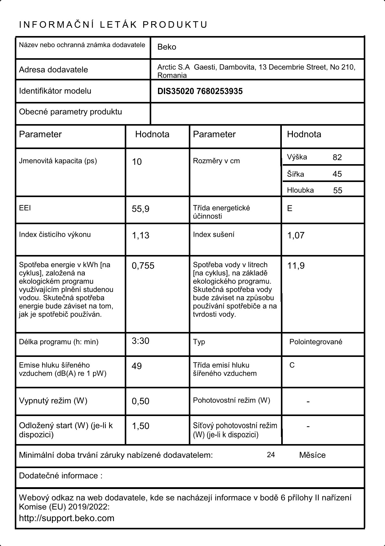 Myčka nádobí Beko DIS35020