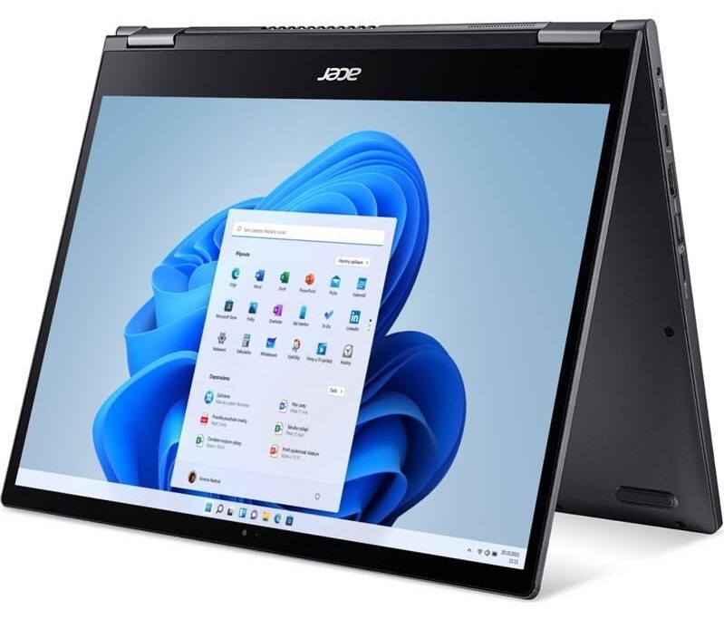 Společnost Acer nabízí stylový notebook, který se svým širokým uplatněním využijete jak v kanceláři při plnění pracovních záležitostí, tak i ve škole nebo doma při sledování oblíbených multimédií. Unikátní otočný displej s dotykovou obrazovkou nabízí široké možnosti použití, s nadčasovým designem notebook hravě zapadne do jakékoliv části vaší kanceláře nebo pracovny. Po odklopení víka s 360° pantem vás ohromí dotykový 13,5" IPS panel s QHD rozlišením (2256 × 1504 px), ideálním poměrem stran 3 : 2 pro práci a poměrem obrazovky k tělu 88 %. Úzké rámečky okolo displeje v sobě uschovávají webkameru s HD rozlišením a mikrofony pro videohovory. V notebooku se nachází předinstalovaný operační systém Windows 11 Home.