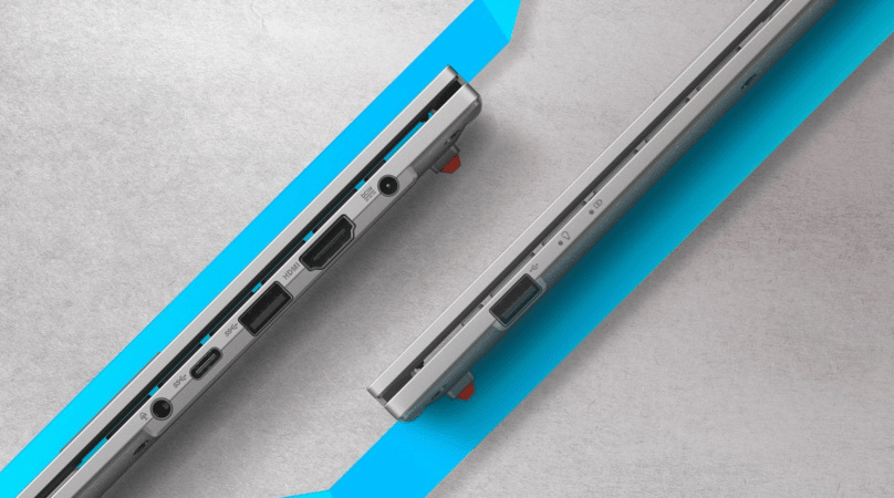 Počítač je vybaven moderním oboustranným konektorem typu USB-C. Na těle zařízení se dále nachází USB 3.2 typu A, USB 2.0 a HDMI pro snadné připojení příslušenství i monitorů. Pro bezdrátové připojení je zde pak Bluetooth 5.1 a Wi-Fi 5.