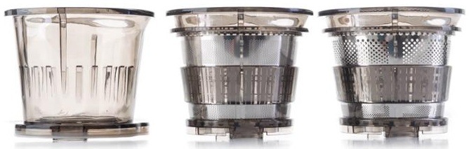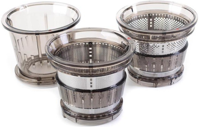 K filtrování slouží rovnou 3 nástavce. Jemné sítko skvěle slouží pro výrobu džusu s nízkým obsahem dužiny. Pokud si přejete dužiny více a hustější džus, použijte sítko s většími oky. Třetí nástavec poslouží pro výrobu domácí zmrzliny.