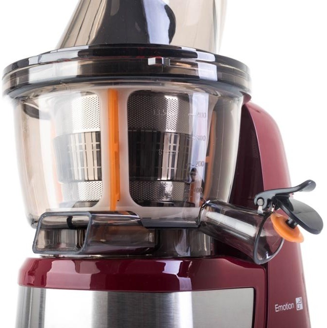 G21 Emotion je vybaven dvěma nádobami na šťávu a dřeň o objemu 1,25 l. Díky širokému otvoru je možné do odšťavňovače vkládat rovnou celé pomeranče nebo jablka. Obratem tak můžete pít 100% džus bez obsahu chemie a konzervantů. Přefiltrovat šťávu je možné použitím jednoho ze dvou sítek, která propustí různý obsah dřeně. Závisí pouze na tom, jestli máte chuť na více hladkou nebo dužinatou šťávu. K dispozici je také třetí sítko pro výrobu domácí zmrzliny. Odšťavňovat ovoce a zeleninu lze bez přerušení při plné nádobě, stačí zavřít víko na nálevce.