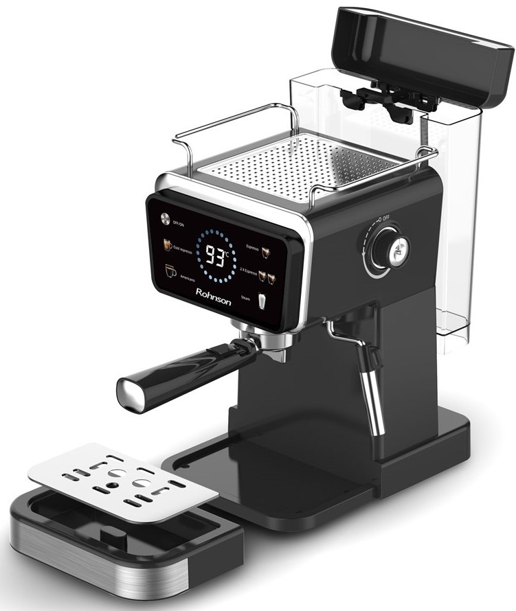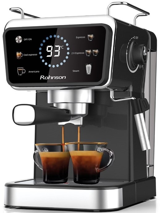 Nedokážete si představit ráno bez hrnku oblíbené kávy s vyváženou chutí, která provoní celý byt? Kávovar Espresso Rohnson R-98015 Hot & Cold se stane výborným a spolehlivým společníkem pro každého, kdo si chce užít nezapomenutelný kávový zážitek v pohodlí domova. Nechte se hýčkat kávovými specialitami, jako je intenzivní espresso, lahodné cappuccino nebo osvěžují ledová káva. Jeho černé provedení s chromovými prvky přinese do vaší kuchyně nádech elegance. Se šířkou 26 cm představuje skvělé řešení i pro méně prostorné kuchyňské linky.