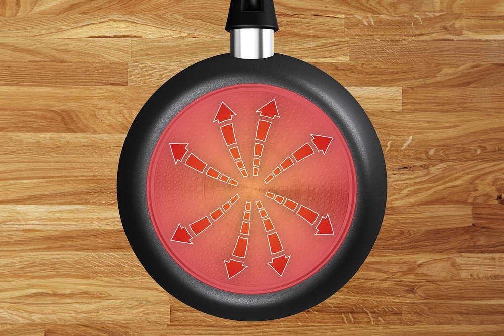Pokročilá indukční technologie zajišťuje rychlé a optimální vedení tepla, díky kterému je ohřev potravin rovnoměrný a výsledek vždy perfektní. Pánev je možné používat na všech zdrojích ohřevu.