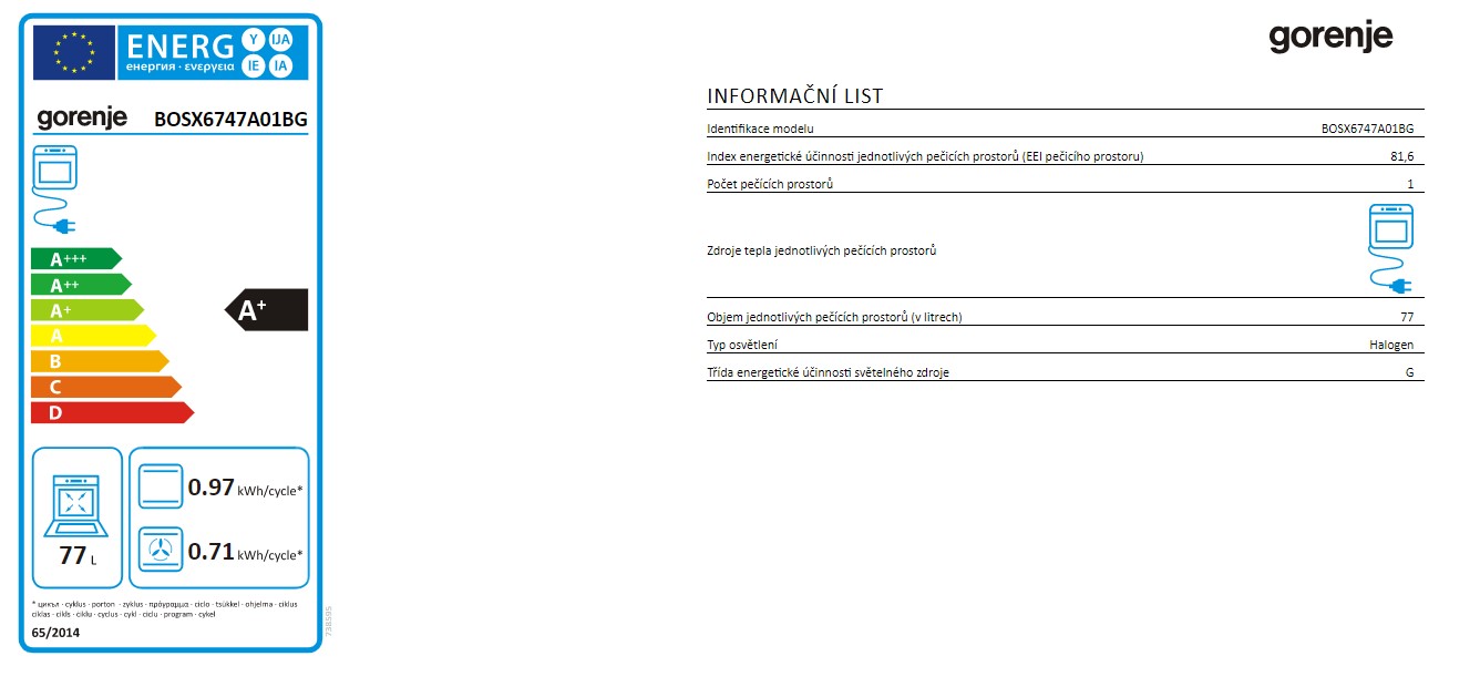 vestavná multifunkční trouba • energetická třída A+ • objem 77 l • horkovzdušná trouba s kruhovým topným tělesem • 1 teleskopický výsuvy • displej • ocenění dTest • pyrolytické čištění • funkce Horký vzduch – zajistí perfektní distribuci tepla do všech úrovní trouby • funkce pyrolytické čištění – čištění při vysokých teplotách • funkce automatické gratinování • funkce časovače • bezpečnostní prvky: dětský zámek, chladná dvířka • V × Š × H: 59,5 × 59,5 × 56,4 cm
