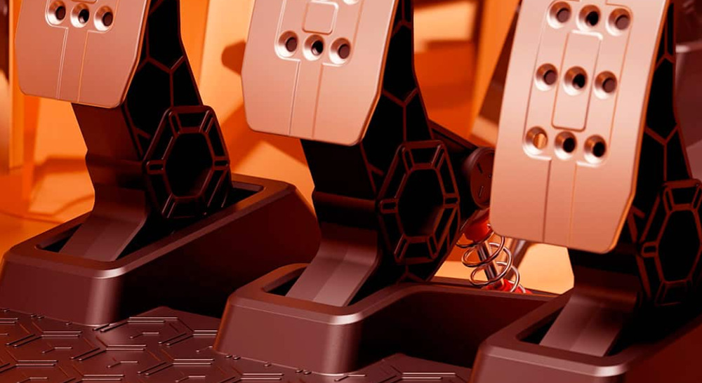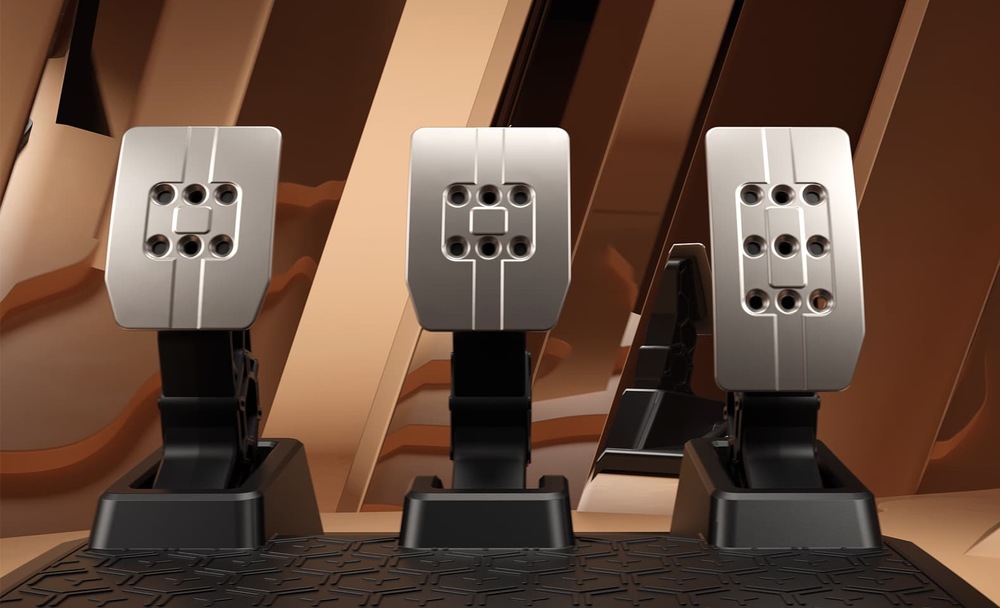 herní pedály • pro PS5, PS4, Xbox One, Xbox Series X/S, PC • magnetická technologie H.E.A.R.T • rozlišení 10 bitů • 4 režimy tlaku brzdy • tlaková odolnost 200 kg • kovové hlavy pedálů • zatížená základna