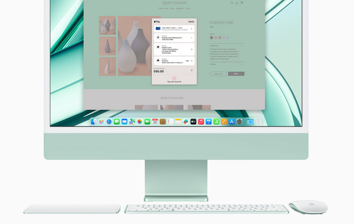 Apple k iMacu přibalí i příslušenství – a ne ledajaké. Těšit se totiž můžete na barevně sladěnou klávesnici i myš Magic Mouse. Magic Keyboard disponuje i čtečkou otisku prstů Touch ID pro rychlé a zabezpečené přihlášení, stejně jako verifikaci plateb pomocí Apple Pay a další využití.