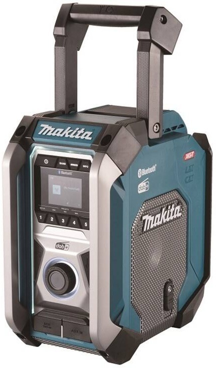 radiopřijímač • stavební • vlnový rozsah FM, DAB+ • LCD displej • automatické ladění s možností uložení 5 stanic • stereoreproduktory s wooferem • technologie Bluetooth • možnost nabíjení externího přístroje přes USB • kompatibilní s akumulátory Li-Ion 12-40 V – Makita XGT 40 V, Makita CXT 12 V, Makita LXT 18 V • pogumování • ochrana IP65 • síťový adaptér • Š × V × H: 30,5 × 17,2 × 28,5 cm