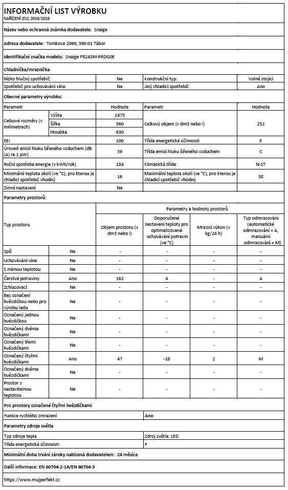 chladnička s mrazákem • výška 144 cm • objem chladničky 162 l / mrazničky 44 l • energetická třída E • systém automatického rozmrazování chladničky • mrazicí kapacita až 2 kg za 24 hodin • police z bezpečnostního skla • zásuvka na ovoce a zeleninu • hlučnost 39 dB • V × Š × H: 144 × 55 × 61,5 cm