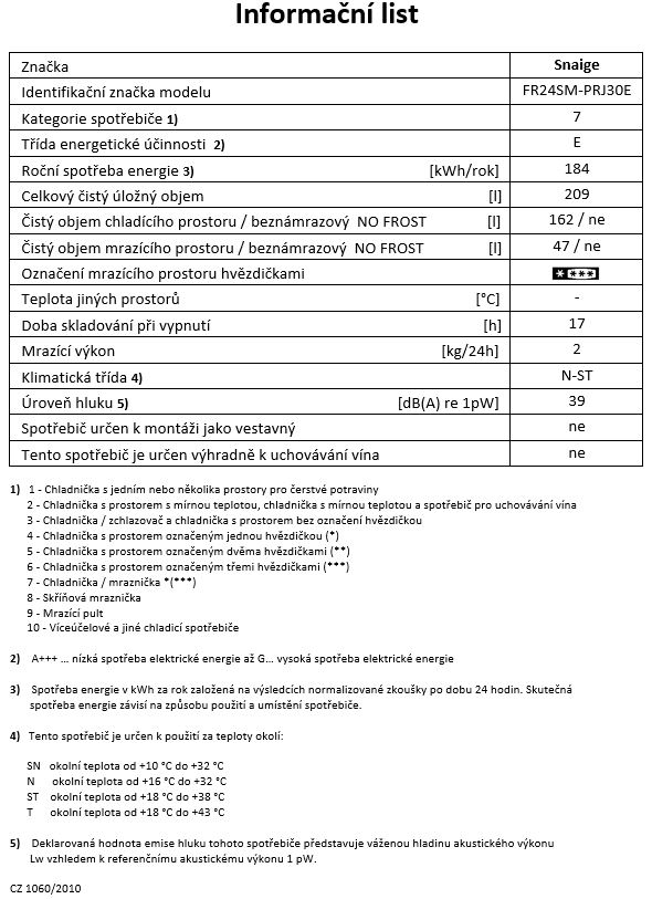 beznámrazová chladnička s mrazákem • výška 176,5 cm • objem chladničky 201 l / mrazničky 54 l • energetická třída E • zásuvka Vit Control pro ovoce a zeleninu • systém Total No Frost • retro design • mechanické ovládání • automatické rozmrazování chladničky • LED osvětlení • hlučnost 41 dB • V × Š × H: 176,5 × 54,5 × 66,8 cm