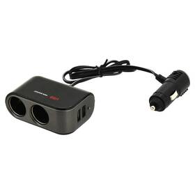 rozdvojka • autodoplněk • adaptér • napájení 12 V / 24 V • 2× USB • zásuvka zapalovače: 2 • napájecí kabel 60 cm • materiál: plast, kov • V × Š × H: 19,5 × 4,0 × 15,0 cm • hmotnost: 0,1 kg