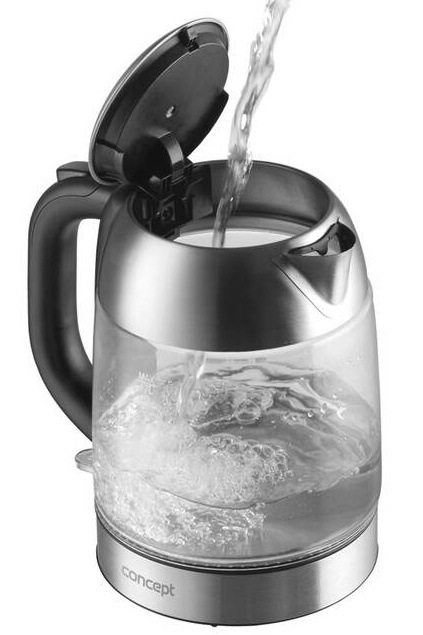 Varná konvice Concept disponuje velkým objemem 1,7 litru, což ocení zejména domácnosti s více členy nebo častými návštěvami. Rychlost ohřevu vody je závislá především na jejím příkonu. Příkon konvice 2 200 W vás nenechá dlouho čekat a během chvíle bude horká vody připravena. Ohřev vody probíhá pomocí topné spirály, skryté pod nerezovým plochým dnem. Což je výhodné zejména proto, že nedochází k usazování vodního kamene na spirále. Konvici tak lze díky hladkému dnu lépe udržovat v čistotě a její životnost se prodlouží.
