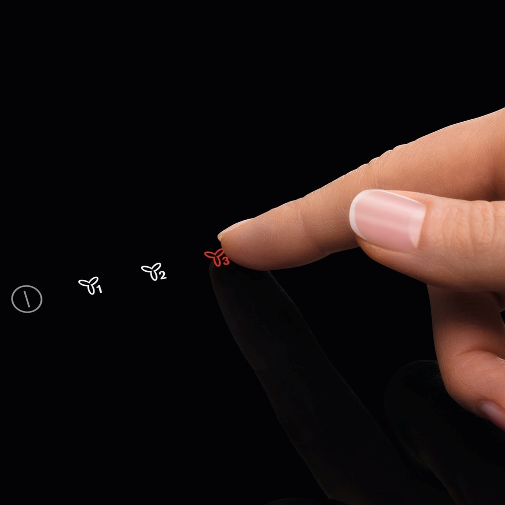 Odsavač par budete ovládat prostřednictvím skleněného panelu s dotykovou jednotkou.
