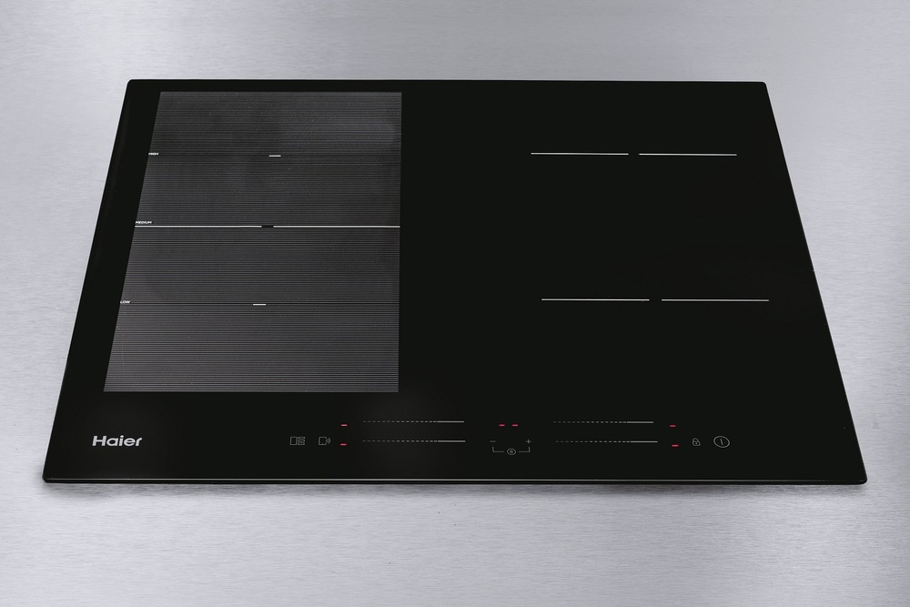 Varná deska Haier zaujme čistým a minimalistickým designem v černé barvě s rovnými hranami, které perfektně ladí s ostatními vestavnými spotřebiči Haier Series 4.