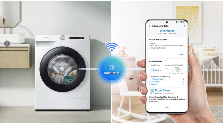 Perte chytře přes aplikaci díky efektivnímu ovládání AI Control. Upravuje parametry praní na míru tím, že si pamatuje vaše návyky, navrhuje vhodné prací cykly a zobrazuje aktuální informace. Aplikace SmartThings nabízí rady ohledně cyklů, plánování a řešení problémů. Zažijte novou úroveň praní!
