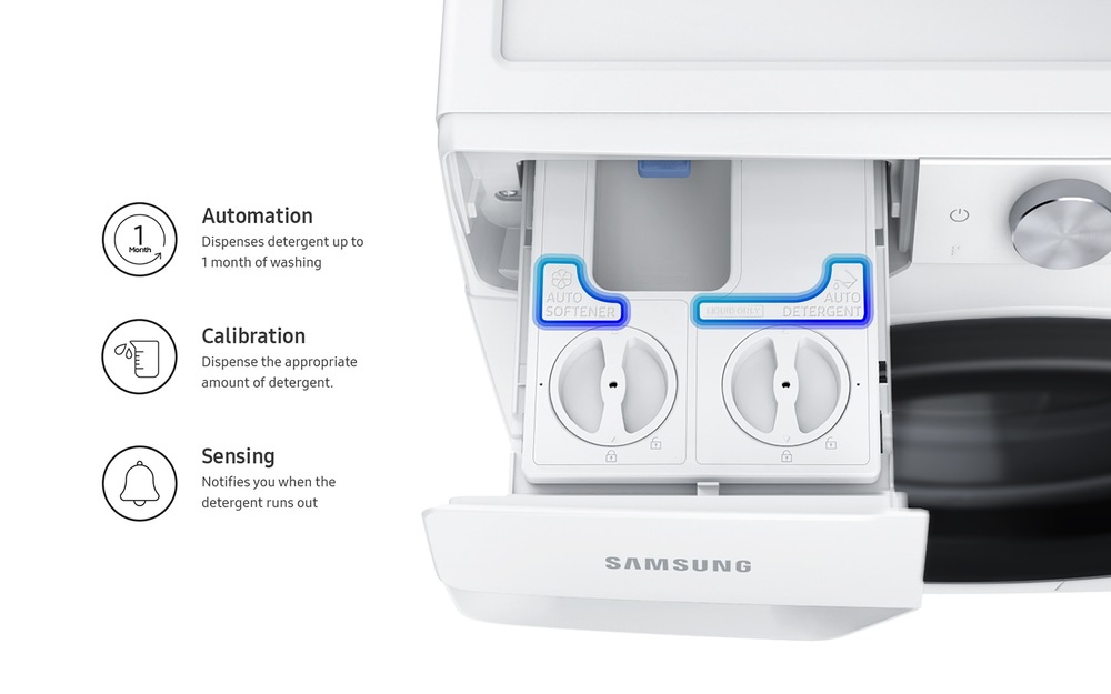 S technologií Auto Dispense získáte ty nejlepší výsledky praní ještě úsporněji. Tato technologie automaticky dávkuje množství pracího prostředku. Nabízí dost prostoru až na měsíční zásobu prostředku, tudíž není potřeba prostředek neustále doplňovat.