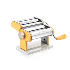 strojek na těstoviny • tagliolini, fettuccine, lasagne, polévkové nudle • hladké a krájecí válce • kolečko s číselníkem pro nastavení tloušťky těsta • kovová svorka pro uchycení na pracovní desku • materiál: nerez, kov a plast • návod k použití s originálními recepty