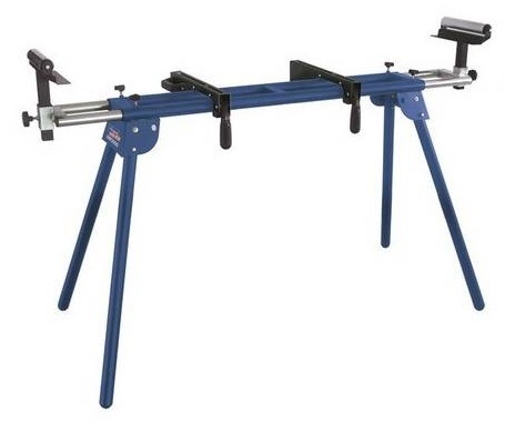stojan • pro pokosové pily • výška 90 cm • rozsah prodloužení ramen 125 až 200 cm • nosnost 150 kg • snadné přenášení • sklopné nohy podstavce • upínací lišty na pilu s rychloupínacím systémem