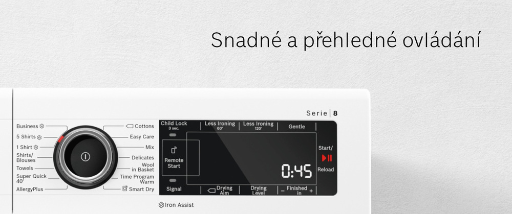 Bosch se soustředí také na maximálně intuitivní obsluhu. Stačí tak zvolit program prostřednictvím otočného voliče, načež se zobrazí veškeré potřebné informace na velkém přehledném displeji.