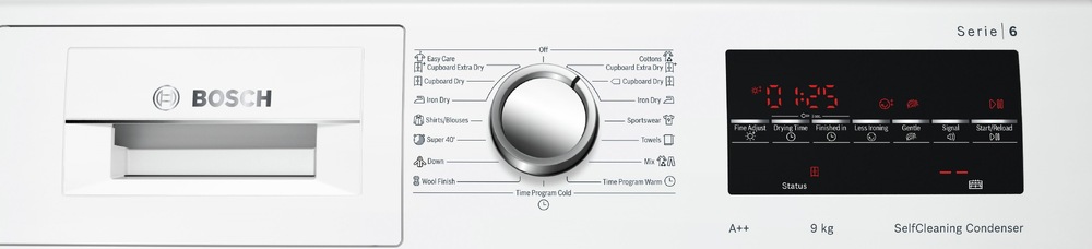 Sušička klade velký důraz také na to, aby se snadno ovládala, čemuž výrazně napomáhá velký LED displej. Její buben přitom pojme až 9 kg prádla a dokonalý přehled o aktuálním procesu budete mít i díky vnitřnímu LED osvětlení, které navíc podtrhuje moderní design. Jisti si v každém případě můžete být maximální šetrností vzhledem k systému Sensitive Drying a rozhodně ani nebudete provozem spotřebiče nijak rušeni, neboť hlučnost nepřesahuje i díky AntiVibration designu eliminujícímu vibrace komfortní hranici 64 dB.
