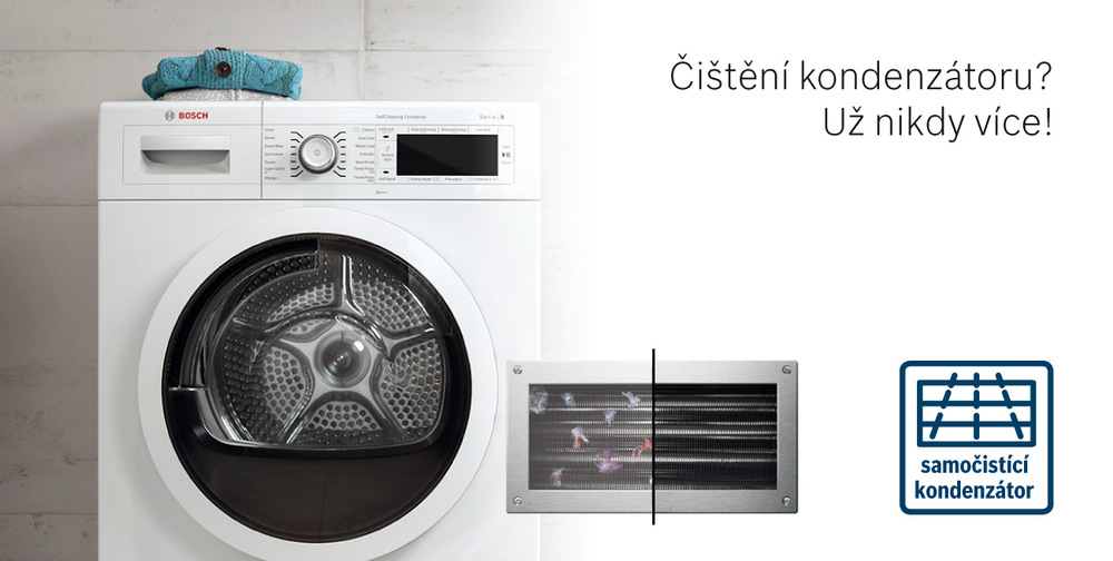 Nádržka na kondenzát a celý systém odvodu je vybaven funkcí SelfCleaning. Díky němu se během procesu sušení automaticky proplachuje kondenzační box. To znamená, že čištění kondenzátoru se stává minulostí. Funkce navíc přispívá maximálně efektivnímu provozu po celou dobu životnosti spotřebiče.
