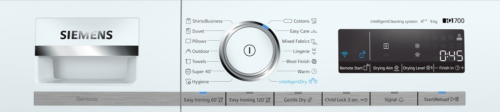 K dispozici budete mít 15 programů, mezi kterými naleznete: hygiena, bavlna, košile / halenky, intelligentDry, spodní prádlo, ručníky, polštáře, mix, outdoor, super 40', přikrývky, nemačkavé prádlo, vlna závěr a časový program teplý. Vše si pohodlně nastavíte pomocí velkého displeje a otočného voliče s integrovaným tlačítkem zap. /vyp., k dispozici jsou také TouchControl tlačítka. Dobře čitelný displej vás provede celým průběhem sušení. Informovat vás bude např. o nastavené teplotě nebo zbývajícího času, jeho prostřednictvím si zvolíte také přídavné funkce, jako např. dětskou pojistku, odložený start nebo odložení ukončení programu až o 24 hodin.