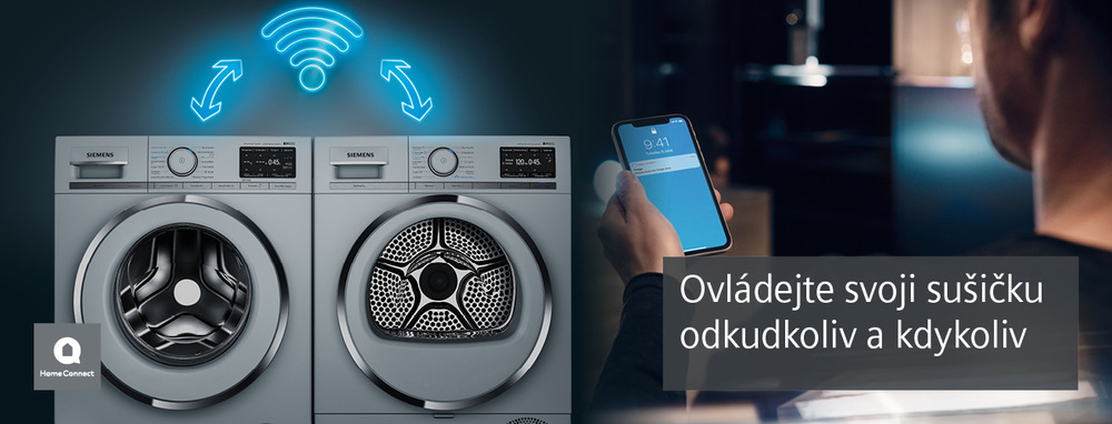 Nyní můžete mít nad svou sušičkou přehled odkudkoli. Můžete ji ovládat, zapínat či dostávat notifikace. A to vše díky technologii Home Connect. Sušičky vybavené touto technologií dokáží doporučit i vhodný program přímo pro vaše oblečení. Díky funkci intelligenDry si sušička sama vše nastaví na základě posledního pracího cyklu.