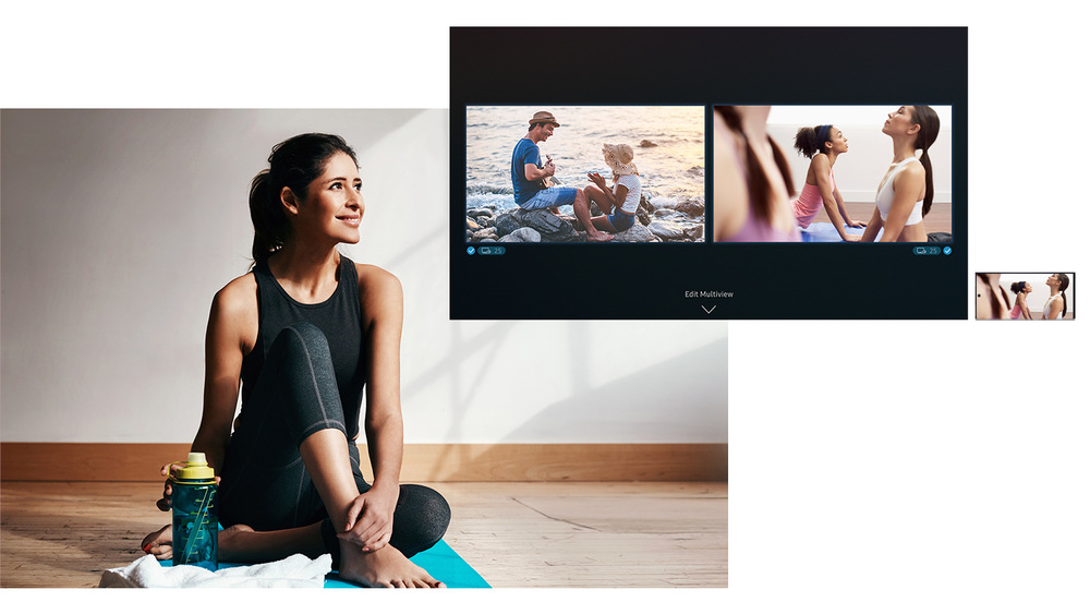 Sledujte dvakrát více obsahu na vaší The Serif s funkcí Multi View, která dokáže rozdělit obrazovku televizoru na dvě části, takže můžete sledovat video na YouTube, které vám poslal kamarád, zatímco posloucháte televizní zprávy.