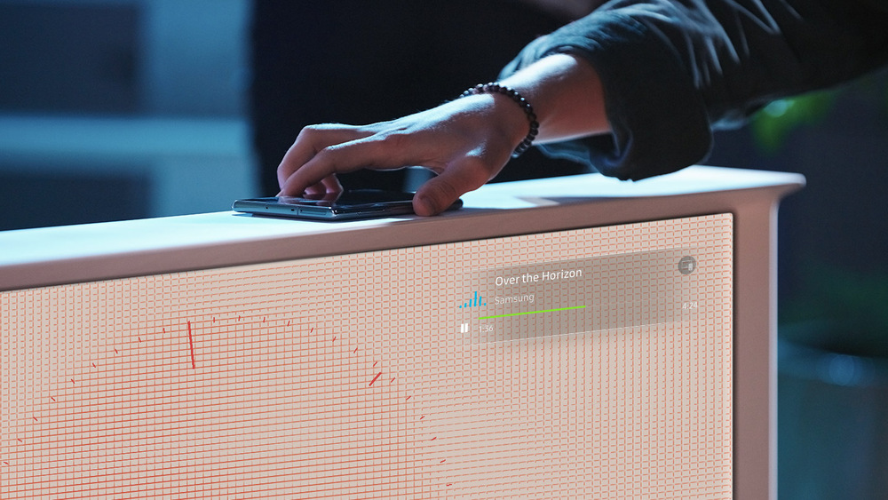 The Serif je nejen krásný, ale také úžasně praktický. Televizor je vybavený bezdrátovou technologií NFC, která vám umožní kontinuální poslech hudby, sledování seriálu či prohlížení fotografií ze smartphonu přímo na televizoru – stačí telefon položit na The Serif.