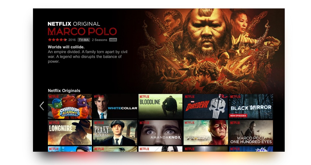 Sledujte neomezeně filmy, televizní pořady a další obsah, nyní v kvalitě HDR. Netflix je jedním z největších internetových televizních kanálů na světě s nabídkou programů, ve kterém si každý najde to své. Sledujte programy naplánované přímo pro vás, včetně originálních seriálů Netflix a oceňovaných filmů a dokumentů.
