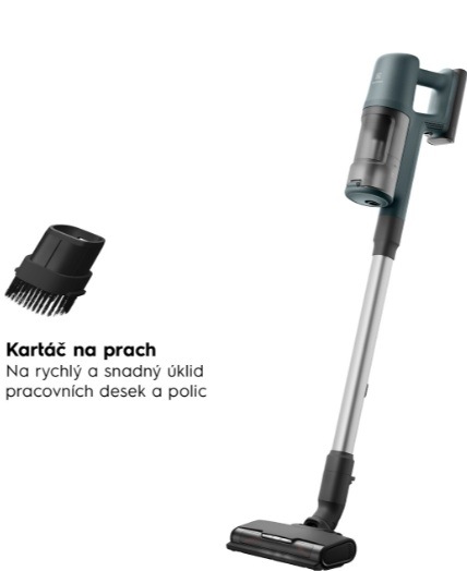 tyčový a integrovaný ruční vysavač • napájení: Li-Ion 21,6 V, výdrž až 50 minut • cyklonový filtr • objem odpadní nádoby: 0,6 l • LED osvětlení na hubici • nástěnný držák • příslušenství: kartáč na prach