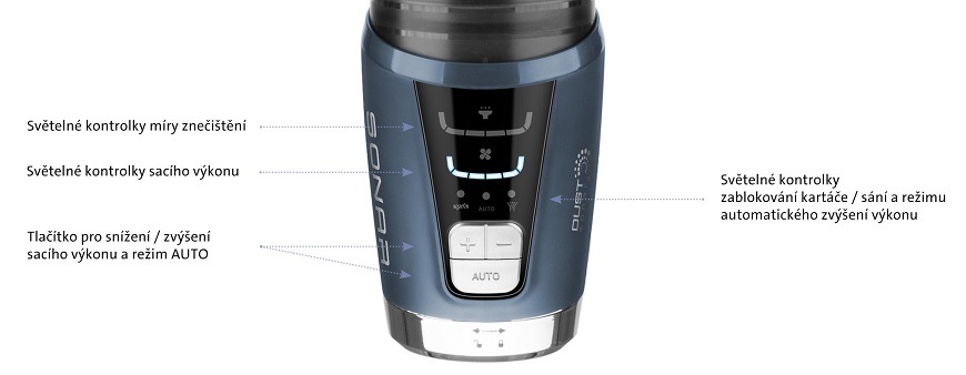 - Unikátní technologie SMART DUST SENZOR reguluje sací výkon a šetří baterii