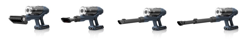 tyčový a integrovaný ruční vysavač • funkce: vysává a vytírá jedním tahem • napájení: Li-Ion 25,2 V, výdrž až 40 minut • 2× HEPA filtr • objem odpadní nádoby: 0,5 l • objem nástavce na mopování 0,5 l • LED osvětlení na hubici • 6 úrovní sacího výkonu • technologie SMART DUST SENZOR optimalizuje sací výkon • digitální motor • příslušenství: velký rotační turbokartáč s flexibilním kloubem, malý elektrický turbokartáč, extra dlouhá štěrbinová hubice SOFT TOUCH, kartáček + polštářová hubice 2 v 1, mopovací nástavec