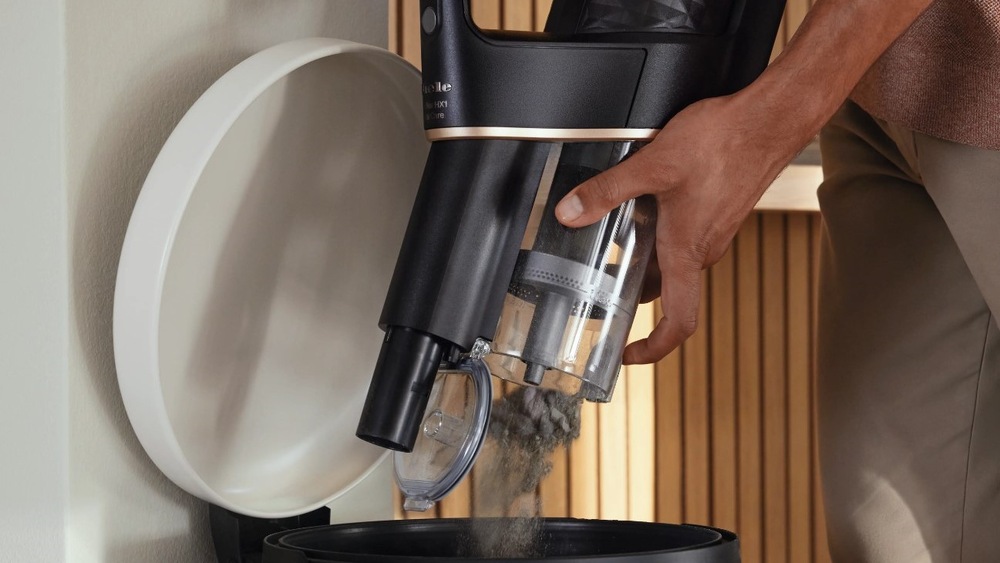 Vyprázdnění nádoby na prach je díky funkci Click2open velmi jednoduché. Stačí jediné stisknutí tlačítka a nádoba se okamžitě vyprázdní přímo do koše. Tento proces je velmi hygienický, protože nepřijdete do kontaktu s prachem.