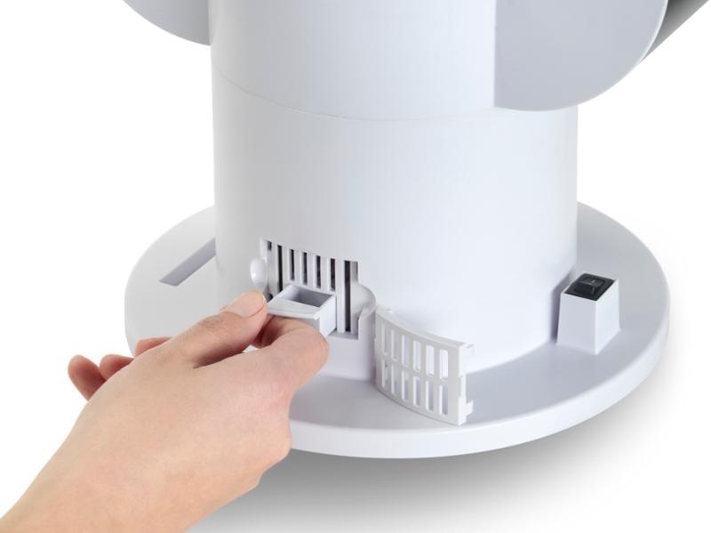 Ve spodní části ventilátoru najdete praktický zabudovaný zvlhčovač, který se postará o dodatečnou vlhkost a poskytuje pocit svěžesti. Zároveň umí váš domov provonět díky zabudovanému difuzéru.