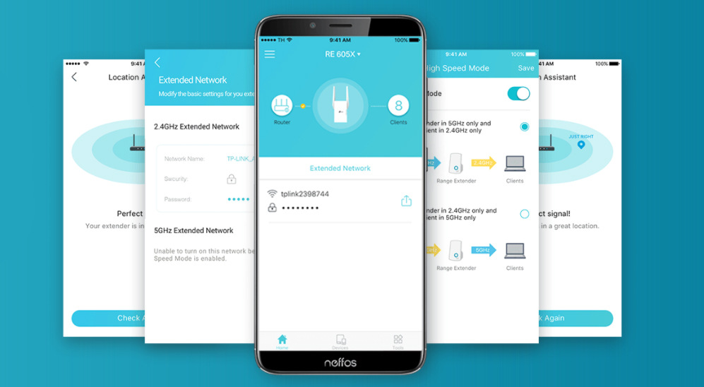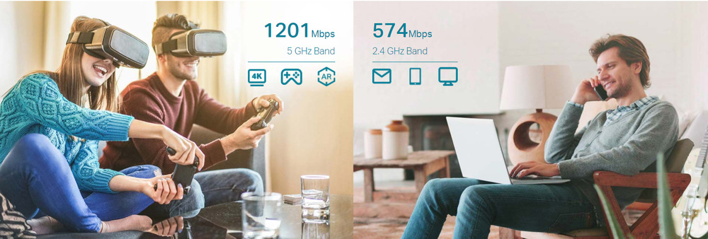 Extender vám splní všechny vaše síťové potřeby. Užijte si rychlou a kvalitní síť, ať už hrajete hry, sledujete video, nebo si jen prohlížíte poštu či internetové stránky. Práce ve dvou pásmech zajistí rychlost až 1 201 Mb/s (pásmo 5 GHz) a 574 Mb/s (2,4 GHz).