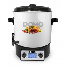 Spotřebič je vybaven praktickým výpustným kohoutkem, s jehož pomocí zbavíte hrnec vody po skončení zavařování. Díky němu ale můžete hrnec využít také při rodinných akcích jako velkou termosku, ve které můžete připravit, uchovat, a následně stáčet horké nápoje, jako například svařené víno nebo čaj. Zavařovací hrnec Domo má zkrátka mnohostranné využití. Výborně poslouží také pro udržování horké polévky nebo guláše před jejich servírováním, pro blanšírování zeleniny, nebo ohřívání ve vodní lázni. Hrnec o hmotnosti 7 kg má rozměry 35 x 29 x 35 cm.