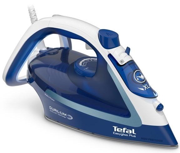 napařovací žehlička • na všechny typy tkanin • příkon 2 500 W • systém proti odkapávání AntiDrip • svislé napařování • systém AntiCalc • funkce kropení • automatické vypnutí • parní ráz 220 g/min • výstup páry až 45 g/min • nepřilnavý povrch • objem nádržky na vodu 270 ml • XL plnicí otvor • barva modrá • rozměry 14 × 15 × 30 cm • hmotnost 1,3 kg
